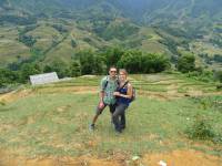 Notre guide vient nous chercher à 09h45 pour partir pour un "trek" (je mets des guillemets, car il s'agit plutôt d'une balade!) de deux jours et une nuit dans un homestay dans un village ethnique des "Hmongs". Nous sommes dans un groupe de 12 personnes (ils nous avaient dit qu'on allait être 6-8 personnes). Ce n'est pas très grave, on nous avait prévenu. Les gens sont super sympas, deux israéliens viennent tout de suite vers nous, nous serrent la main et commencent à discuter! Cela ne nous était pas arrivé souvent jusqu'ici, alors nous sommes surpris en bien! Nous marchons en tout 4 heures et voyons des paysages magnifiques de rizières, de montagne, de rivières. En Chine, c'était bien plus impressionnant au niveau de la grandeur, mais c'est très joli ici aussi. Nous dormons chez une Hmong qui a une grande maison avec beaucoup de lit (pas très authentique, il s'agit plutôt de dortoirs...) Nous profitons du moment avant la souper pour discuter avec les autres personnes du groupe. Il y a 4 israéliens, 2 belges, 3 anglais et 1 français. 2 allemands et 1 écossaise nous rejoignent un peu plus tard. Nous passons une super soirée, la nourriture, préparée par notre guide et notre hôte, était excellente! Ils nous ont également servi environ 3 litres de "happy water" (comme ils l'appellent): de l'alcool de riz à 40 degrés!