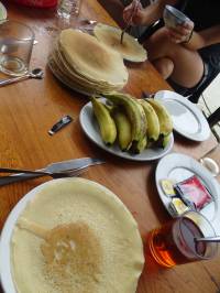 Aujourd'hui c'est notre dernier jour en Chine... Déjà! Ca a vraiment filé! Il ne reste plus qu'à trouver les petits drapeaux chinois pour coudre sur le sac (impossible de les trouver ici). Les routes sont assez mauvaises, nous pensions mettre 4 heures jusqu'à la frontière et finalement nous en avons eu pour 6 heures... Nous arrivons à la douane à pied et là c'était l'inspection! Un gentil douanier nous pose plein de questions, savoir ce que nous avons fait en Chine et si nous avions aimé. Conclusion: soit les chinois sont super sympas soit ils sont vraiment brusques!! Nous nous faisons contrôler deux fois notre passeport en Chine (ils font des têtes bizarres car ils n'ont pas souvent vu de passeports suisse) et aussi deux fois pour arriver au Vietnam. Ca y est!! Nous sommes de l'autre côté et là ça commence tout de suite: "taxi pour Sapa?", "Vous voulez changer de l'argent? C'est le week-end les banques sont fermées"... Mais on reste cool et on passe notre chemin. Nous attrapons un bus de Lao Cai jusqu'à Sapa. Le trajet dure une heure et coûte 1,20 CHF. Là aussi, à la sortie du bus, plein de petites dames nous proposent des hôtels ou des treks. Nous restons "zen" et allons chercher un guesthouse (conseillé dans le Lonely Planet). Nous avons un choc: tout le monde parle anglais, nous arrivons a communiquer sans faire des grimaces et expliquer avec les mains... Ca devient trop facile de voyager ici!! Il n'y a plus de chambre mais un dortoir, où il n'y a qu'une personne. Parfait, on s'installe et on reserve notre trek pour le lendemain. Nous allons ensuite faire un tour dans Sapa. C'est très petit, nous avons l'habitude de devoir marcher beaucoup pour aller d'un endroit à un autre mais là tout est proche. Nous mangeons notre premier repas vietnamien: miam!! Vraiment super bon! :)