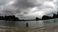 Nous trouvons finalement un bus local qui nous emmène à la station de bus. Nous prenons ensuite notre billet combiné et arrivons sur l'île de Cat Ba vers midi. Nous trouvons un hôtel neuf à un prix super intéressant (6$ pour une chambre double avec petit-déjeuner). Nous nous baladons ensuite sur une montagne environnante qui servait de lieu de défense (avec canons d'époque) contre les français puis les américains. Nous allons ensuite nous baigner sur une des 3 plages de sables fin de l'île (notre première baignade du voyage, ça fait du bien), puis allons manger.