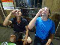 Nous repartons en direction des chutes d’eau du parc, à 2 heures de marche. Ensuite, nous mangeons dans un petit restaurant familial assis à la table de la famille. C’est de nouveau super bon...et ils nous donnent à nouveau de l’alcool fort local (1 shot pour Nadine et 5 pour Yannick)...